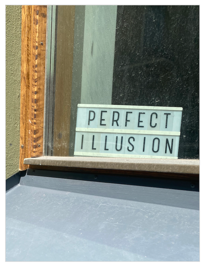 fiz este registro quando notei que a vitrine de uma galeria de arte era ‘emoldurada’ / além disso, a mensagem ‘perfect illusion’ ('perfeita ilusão') realmente acontecia: a moldura clássica do vidro não tinha nenhuma harmonia com o que a galeria vendia / todas as obras de arte à venda eram contemporâneas